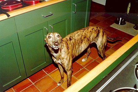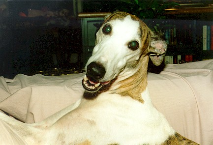This is Bucky, our 9 year old adopted greyhound. He is very laid back and spoiled.